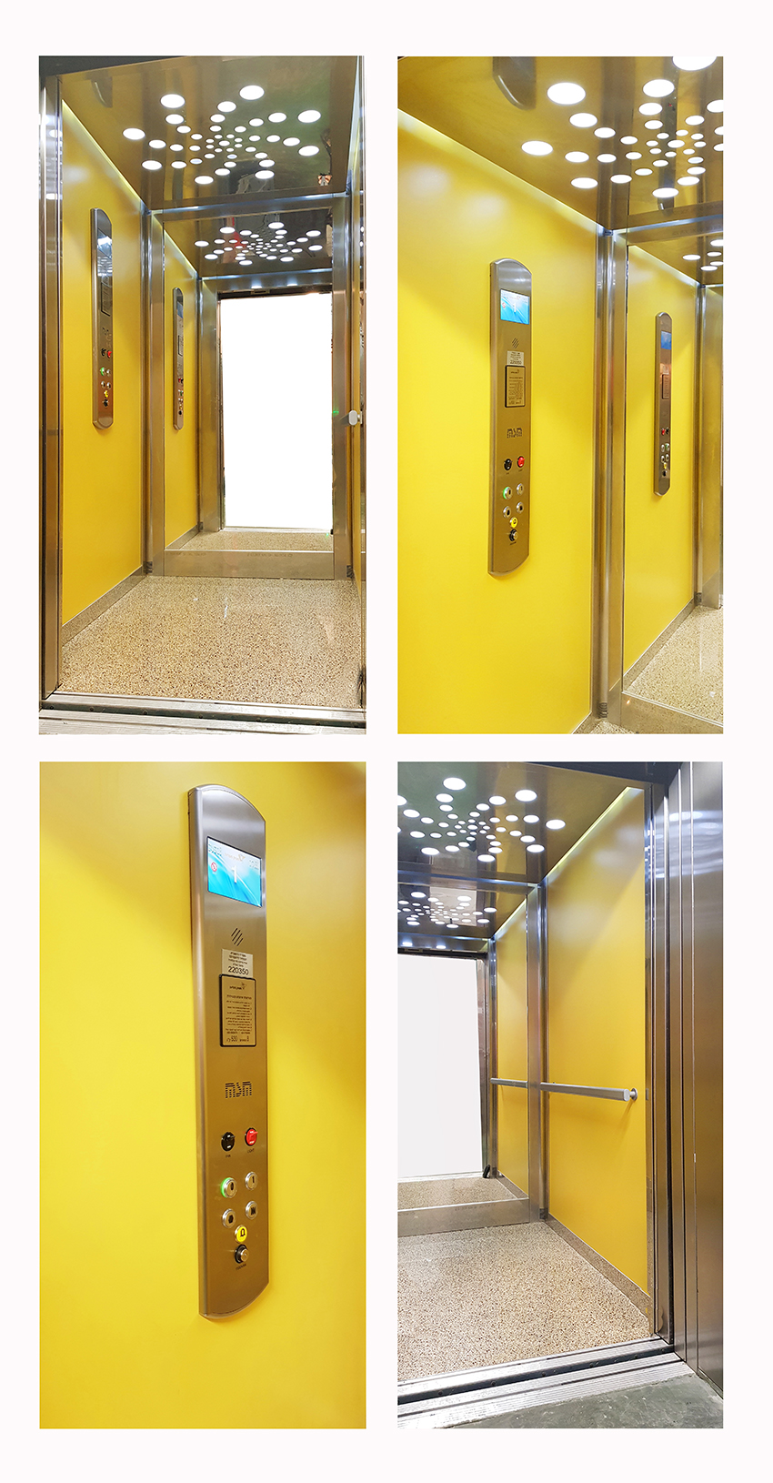 In addition we perform decorative renovations for the elevator that include upgrading the contents of the elevator cabin , replacing the wall coverings (for all types of materials available on the market and tailored to the customer’s personal taste), ceiling, floor, handle, , Plates, and up-to-date button panels, replacement or painting of doors, and more.